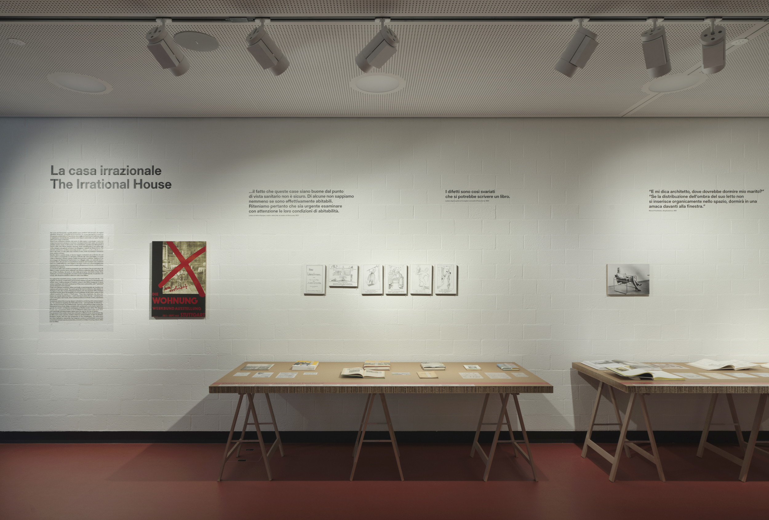 Le immagini esposte, spesso concepite per l’effimera vita di giornali e riviste e dirette a un pubblico allargato, rappresentano un originale strumento critico che testimonia l’impatto dell’architettura sulla vita quotidiana, così come il ruolo culturale e sociale della satira e dell’ironia. Tutto ciò viene approfondito in mostra attraverso quattro sezioni che spaziano dalla figura dell’architetto nella caricatura agli “scandali urbani” provocati da grandi progetti; dalla casa “irrazionale” fino ai tanti esempi di architetti che si sono cimentati nell’arte del cartoon. Tra parodia e denuncia, satira e ironia si rivelano lenti preziose per osservare l’architettura da prospettive inattese, invitando lo spettatore e l’architetto a riflettere sul vero significato dei concetti di progettare e abitare.