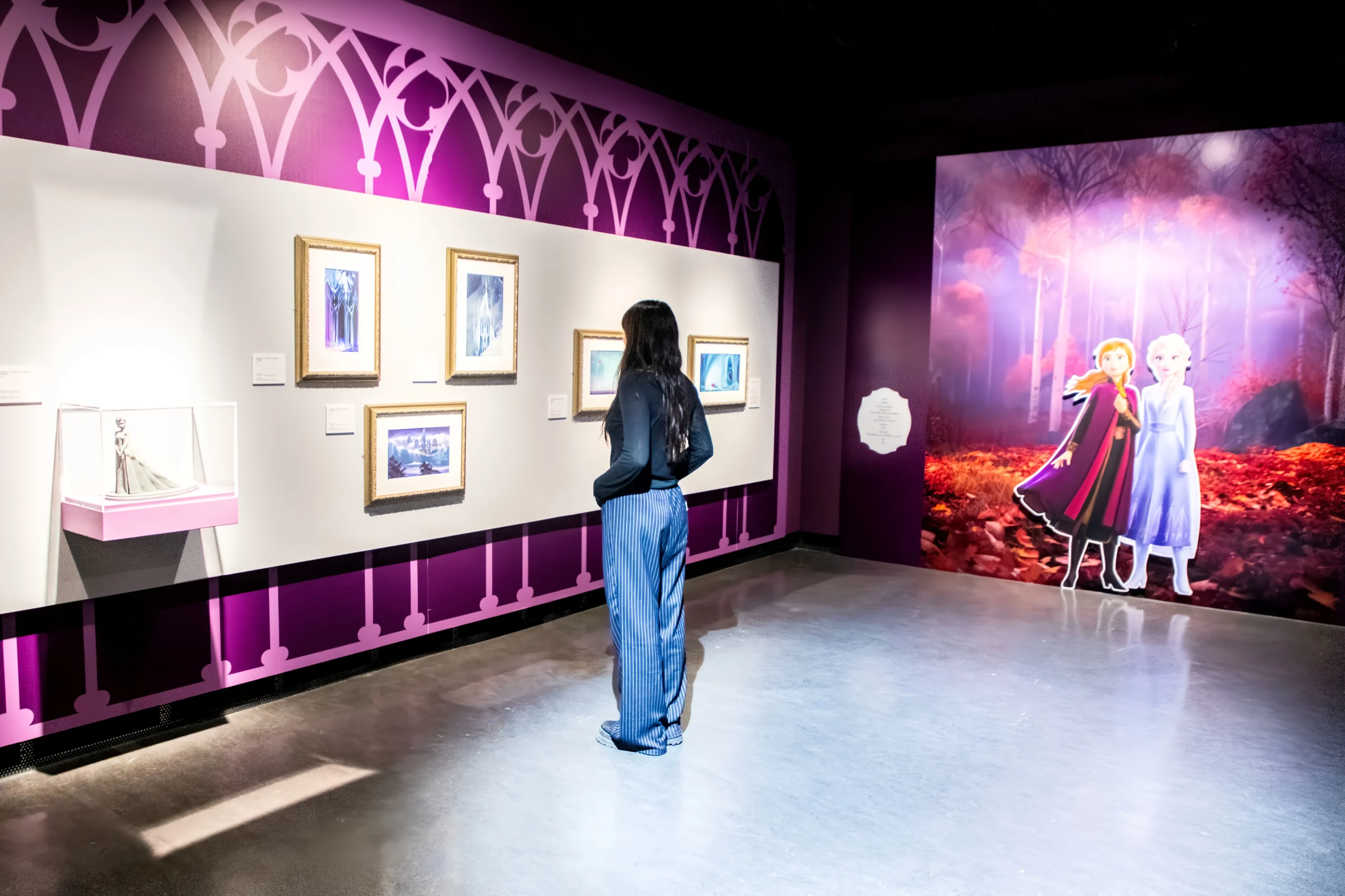 La mostra presenta un allestimento molto scenografico, a partire da uno spettacolare libro animato che, in tanti classici lungometraggi, rappresenta l’inizio di ogni grande storia fino alla “Frozen room”, una suggestiva sala che – attraverso suoni, cristalli, riflessi e luci – consente di immergersi nell’atmosfera del magico Regno di Arendelle. L’esposizione al Centro Culturale Altinate San Gaetano si arricchisce inoltre di uno speciale percorso interattivo pensato ad hoc per i più piccoli – dai 4 ai 10 anni – con numerose attività educational divertenti da scoprire lungo le sale espositive.