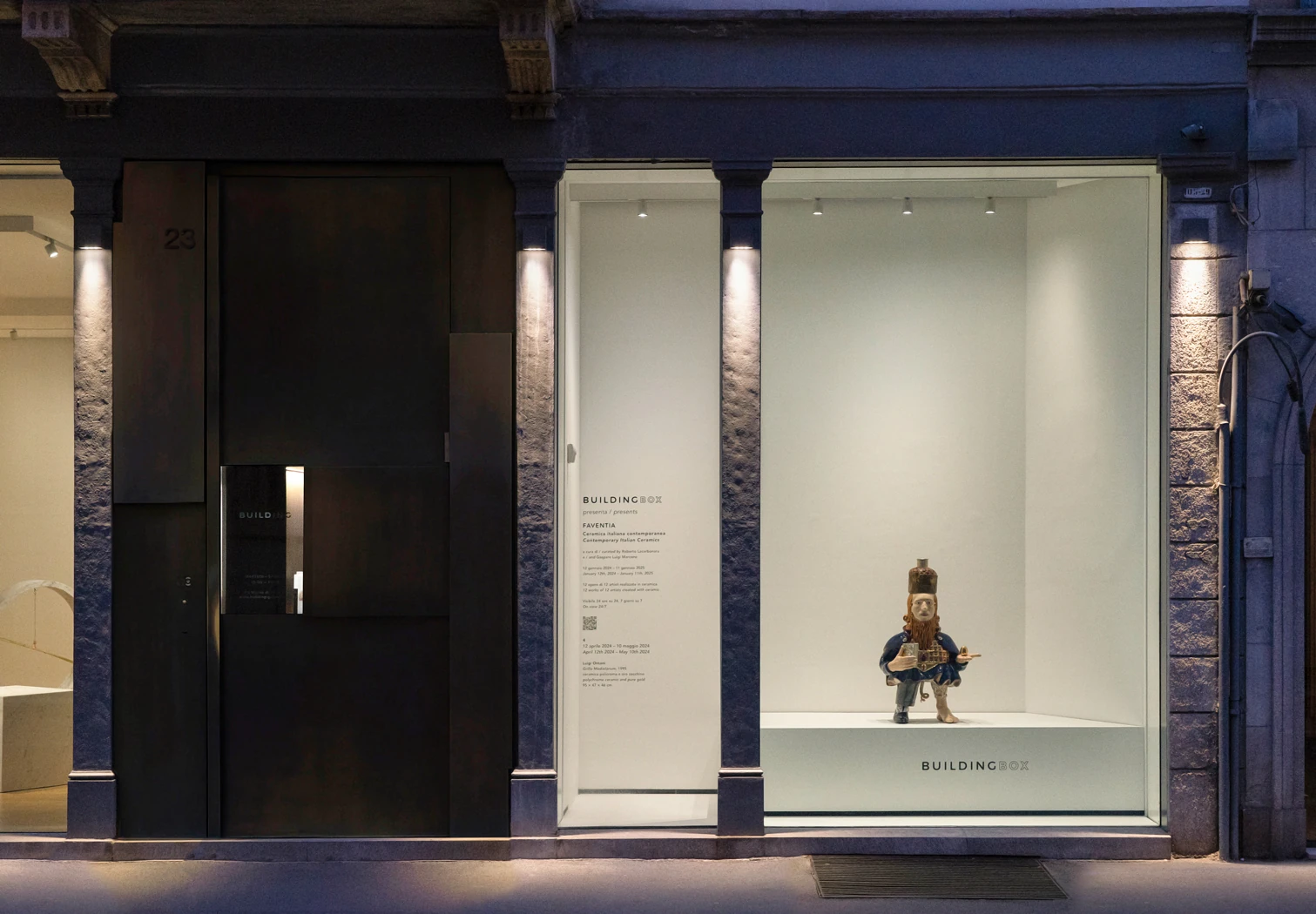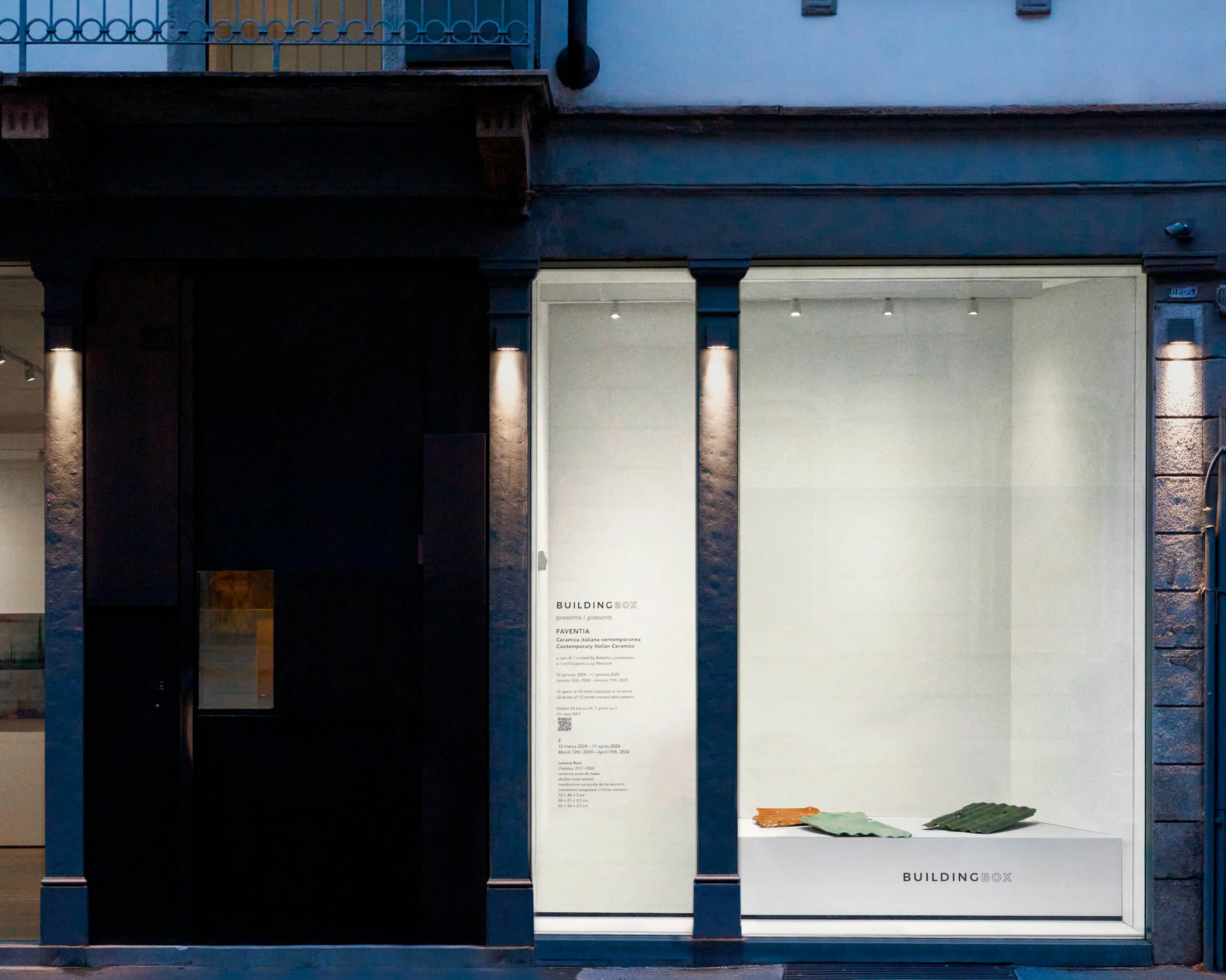 Dal 12 gennaio 2024 all’11 gennaio 2025, BUILDINGBOX presenta “FAVENTIA. Ceramica italiana contemporanea”, un progetto espositivo a cura di Roberto Lacarbonara e Gaspare Luigi Marcone che coinvolge dodici artisti italiani chiamati a esporre sculture e installazioni realizzate in ceramica: un programma dedicato alla secolare tradizione artistica della città di Faenza, tra i principali distretti produttivi nazionali, nonché sede ed epicentro di progetti e musei tematici come il “MIC Museo Internazionale delle Ceramiche”, il “Premio Faenza” e il “Museo Carlo Zauli”. Inoltre, la rassegna nasce come forma di omaggio verso un territorio segnato dall’alluvione del maggio 2023. Come nella consueta programmazione annuale di BUILDINGBOX, la rassegna ospita interventi a cadenza mensile. In questa edizione, la presentazione delle opere avverrà il 12 di ogni mese: “numerologia” che allude alla ciclicità e alla sintesi tra elementi terreni, spirituali e temporali, oltre alle numerose simbologie legate al numero 12 nella storia e nelle culture di diverse parti del mondo.
