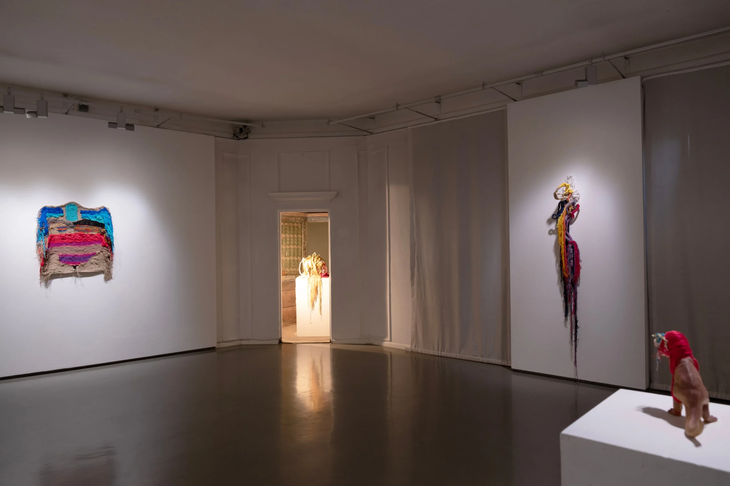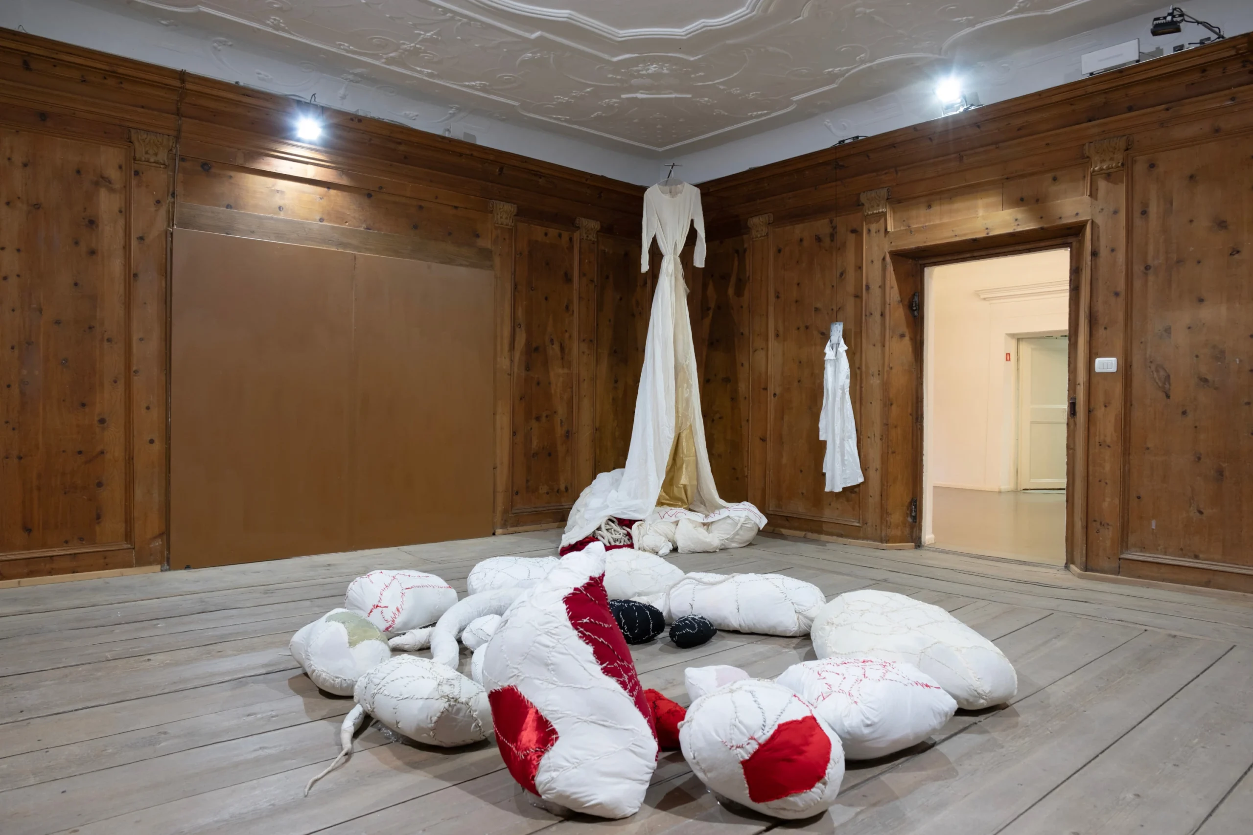 “Il lavoro di Thomas De Falco nasce come se fosse un cordone ombelicale, come un organo che cresce, come arterie e vene che diramano” spiega Elsa Barbieri, direttrice del Museo. “Comprendere una simile immagine è possibile riconoscendo nella sua scultura tessile una natura morta che parla attraverso la sua performance – intesa come rito che alimenta un messaggio. Non è un gioco di parole, è anzi la più generosa chiave di lettura che l’artista ci offre: «la performance non esiste senza scultura tessile, la scultura tessile non esiste senza il corpo del performer»”.