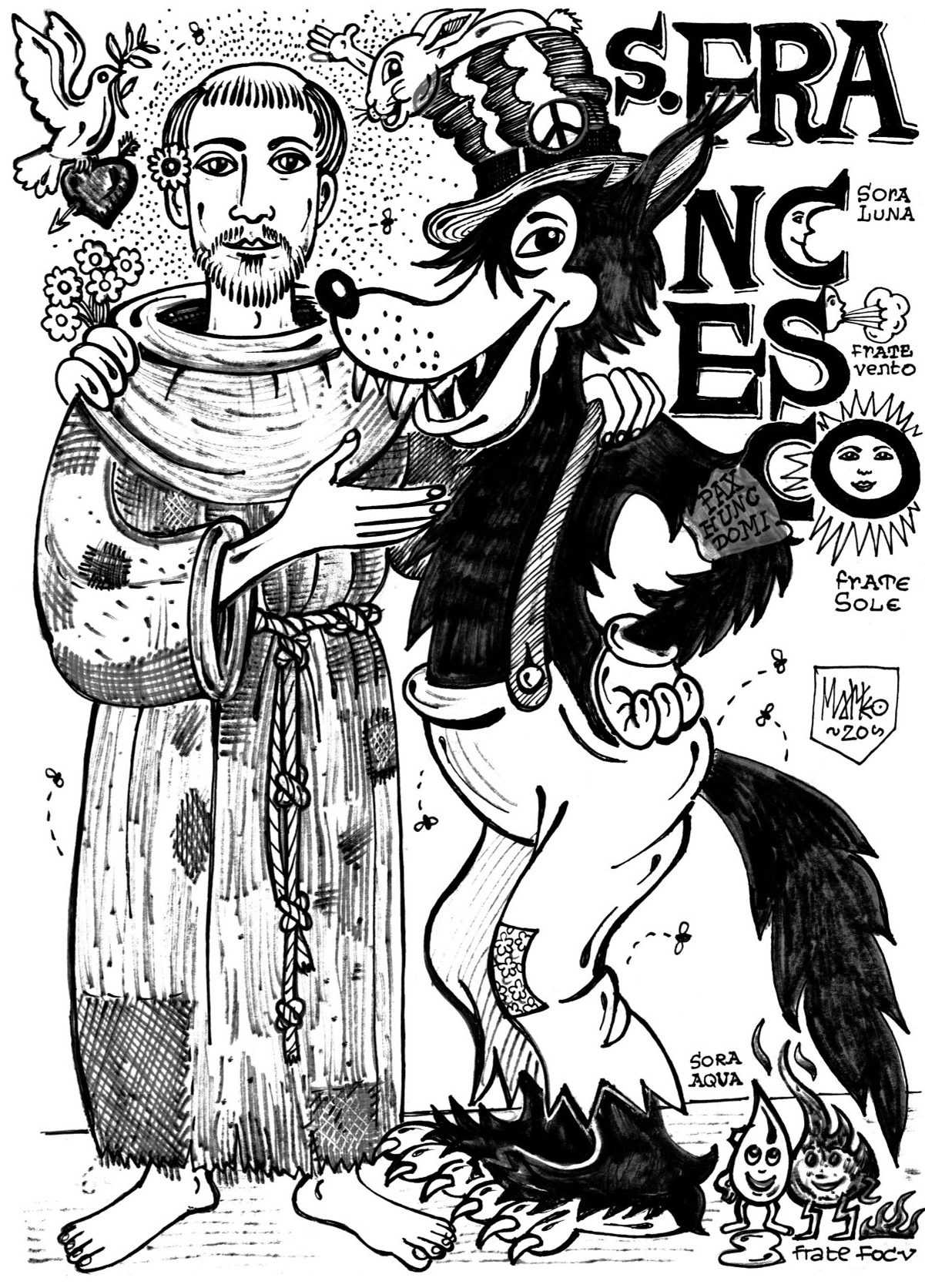 “Santi e Briganti” – Immagini e pensieri da una coscienza ispirata dall’amore – è l’ultimo progetto pensato, ricercato e disegnato dall’artista Matteo Guarnaccia prima della sua scomparsa e dedicato a una serie di artisti, filosofi, musicisti, poeti, scrittori, rivoluzionari, guru, santi, pensatori, movimenti, outsider, trickster e compositori che hanno messo in discussione lo stato delle cose agendo di conseguenza, da Vivienne Westwood a Ipazia, da David Bowie a Bob Dylan, da Picasso ai Preraffaelliti, da San Francesco a Buddha, solo per citarne alcuni. Proprio come Guarnaccia, che ha sempre testimoniato – intensamente, attraverso la sua arte e la sua vita – lo stato delle cose, con azioni, gentilezza, rigore ed empatia.