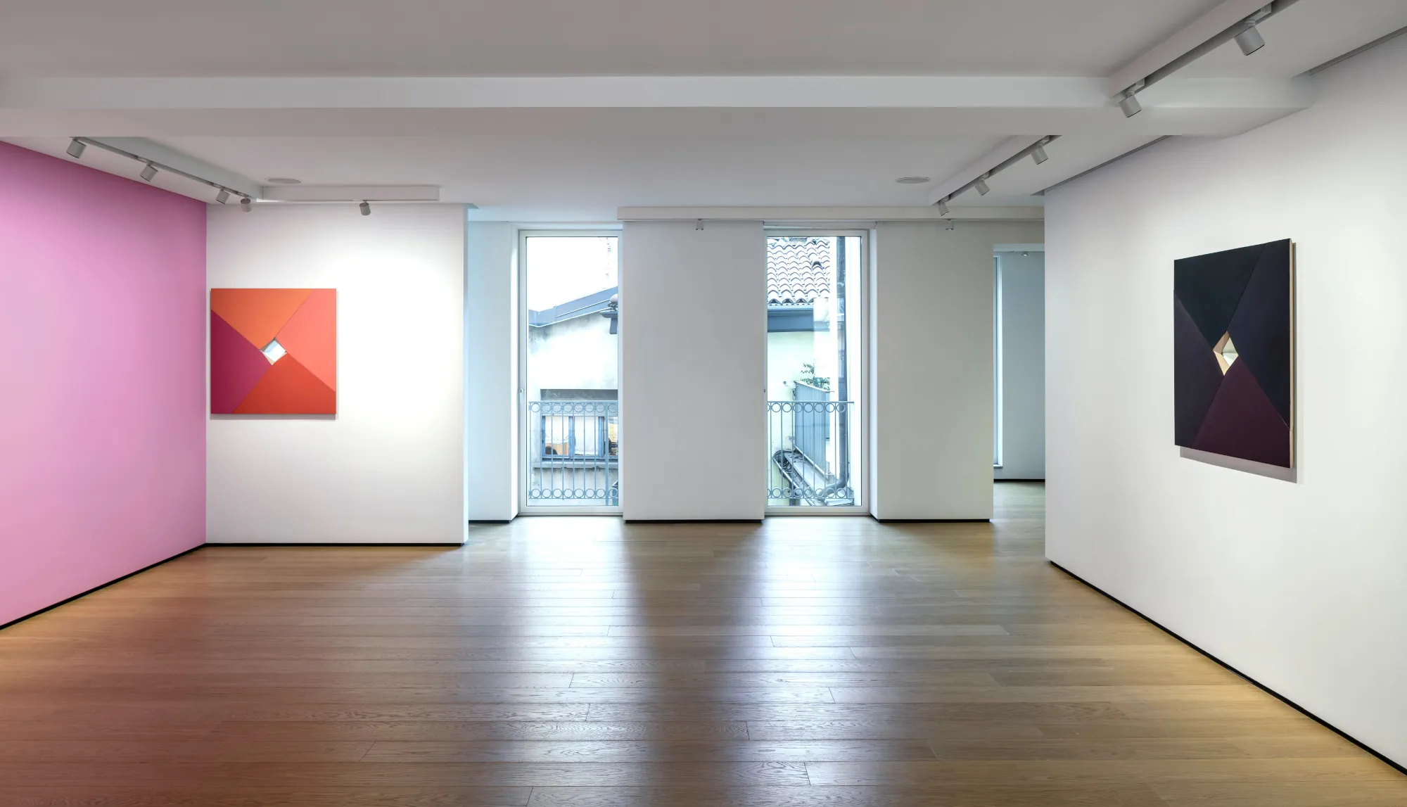 Sfondando metaforicamente e concretamente i confini imposti dagli elementi strutturali della galleria, le opere di Sean Shanahan, derivati della pittura monocroma, abitano fisicamente lo spazio tridimensionale di BUILDING in un allestimento che si pone al limite con l’installazione.